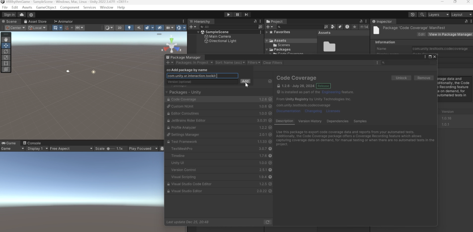 复制"com.unity.xr.interaction.toolkit",点击add package by name,粘贴进去