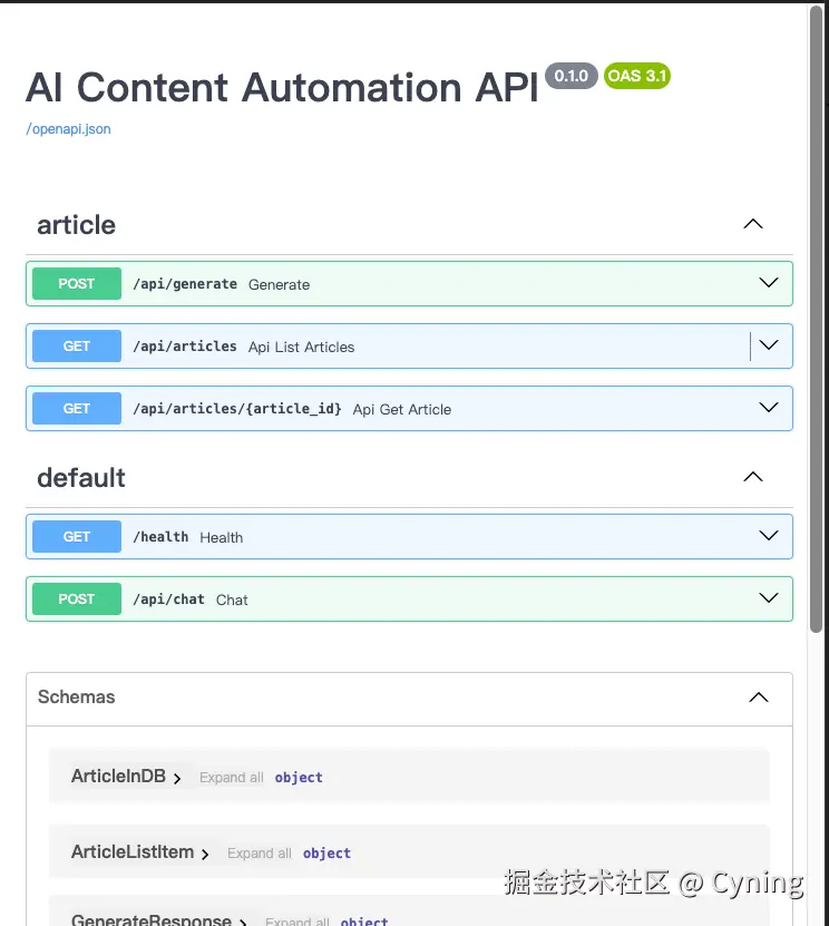 api/article.js:generateArticle、listArticles、getArticle、listTempArticles、getTempArticleContent。
