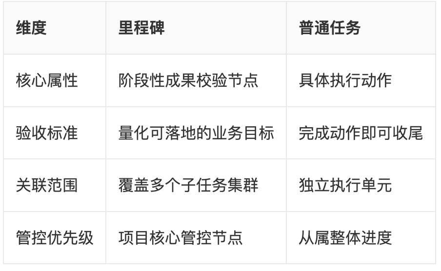 1. 里程碑和普通任务的核心差异