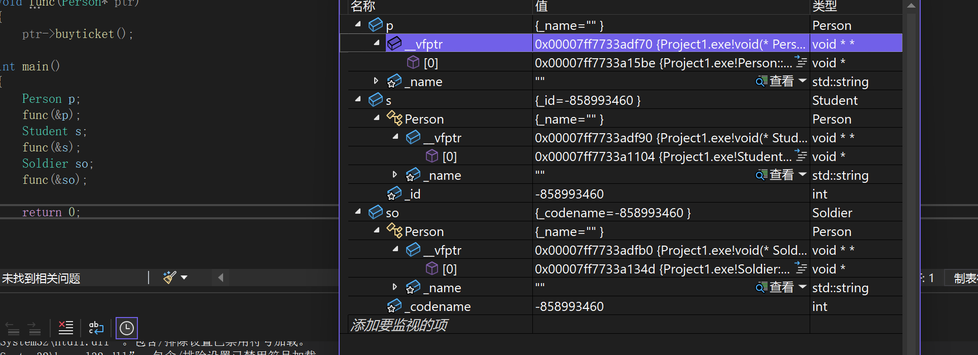 满足多态条件后,底层不再是编译时通过调用对象确定函数的地址,而是运行时到指向的对象的虚表中确定对应的虚函数的地址,这样就实现了指针或引用指向基类就调用基类的虚函数,指向派⽣类就调⽤派⽣类对应的虚函数。