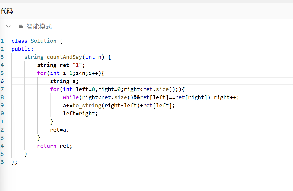 while(right<ret.size()&&ret[left]==ret[right]) right++;