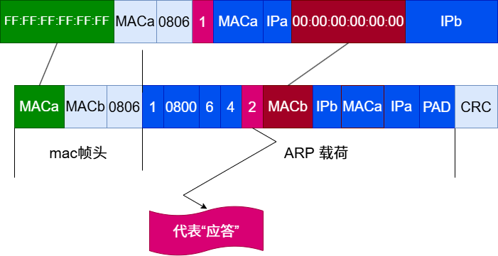 OP=2),填上自己的 MAC 地址,单播发回给主机 A。(主机 B 发现是找自己的之后,在发应答包之前,还会顺手把主机 A 的