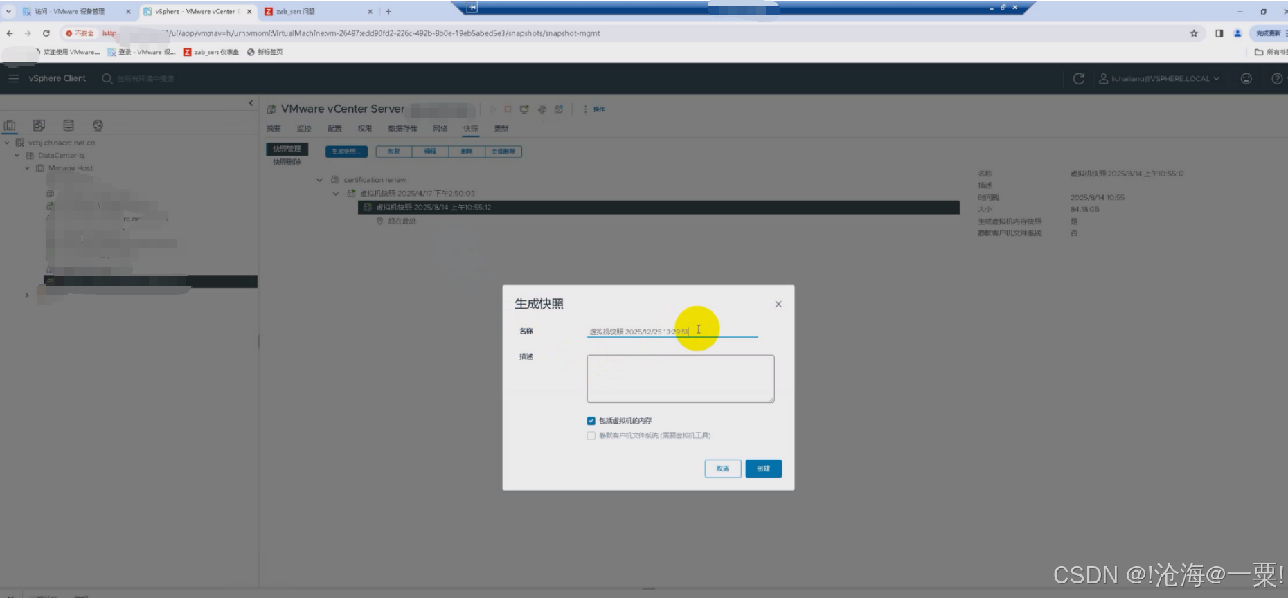 - 对Vcenter进行快照