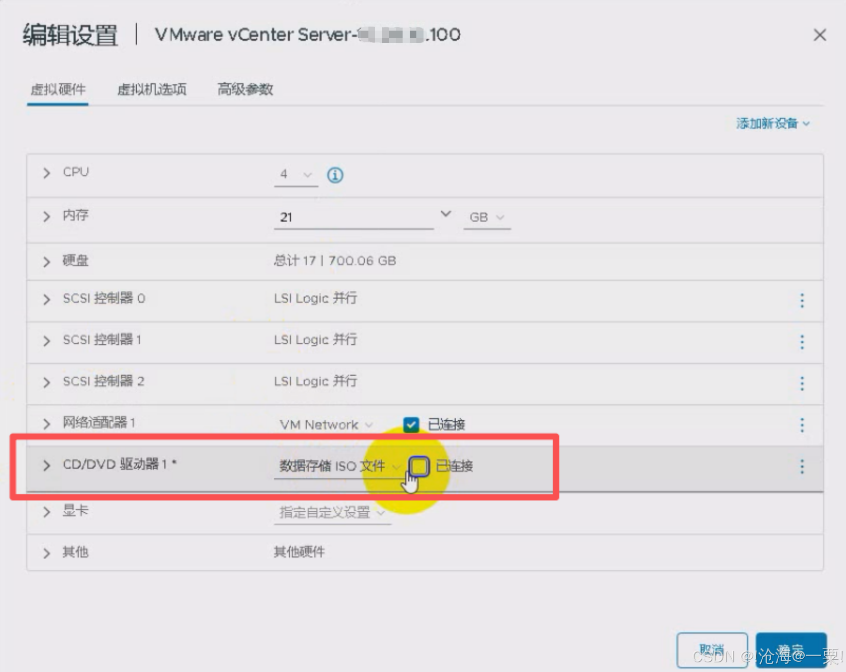 如遇到CD光盘锁定,挂在失败,在ESXI管理界面选择强制解除锁定