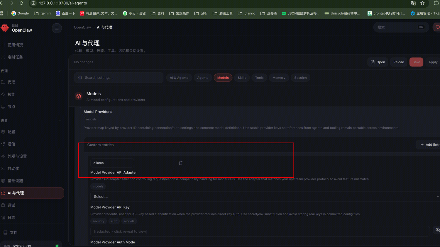 图上是我配置的 ollama 地方