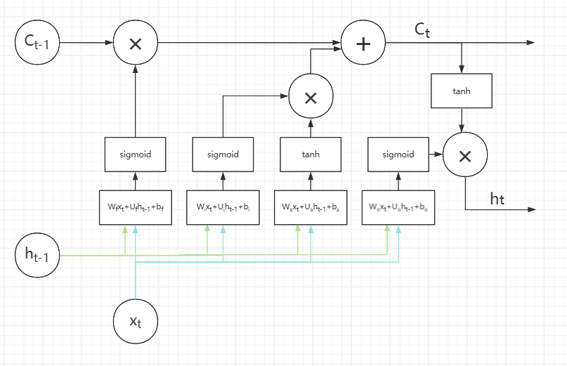 - 计算遗忘门、输入门、候选细胞状态、输出门。