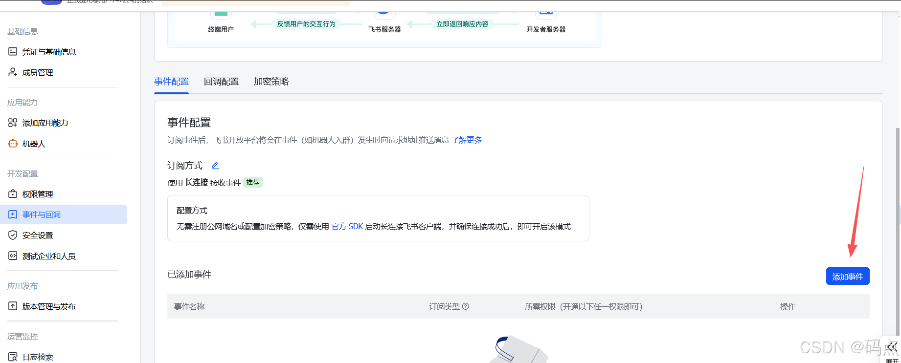 进入飞书开放平台:https://open.feishu.cn/,创建一个应用,并添加机器人应用能力。