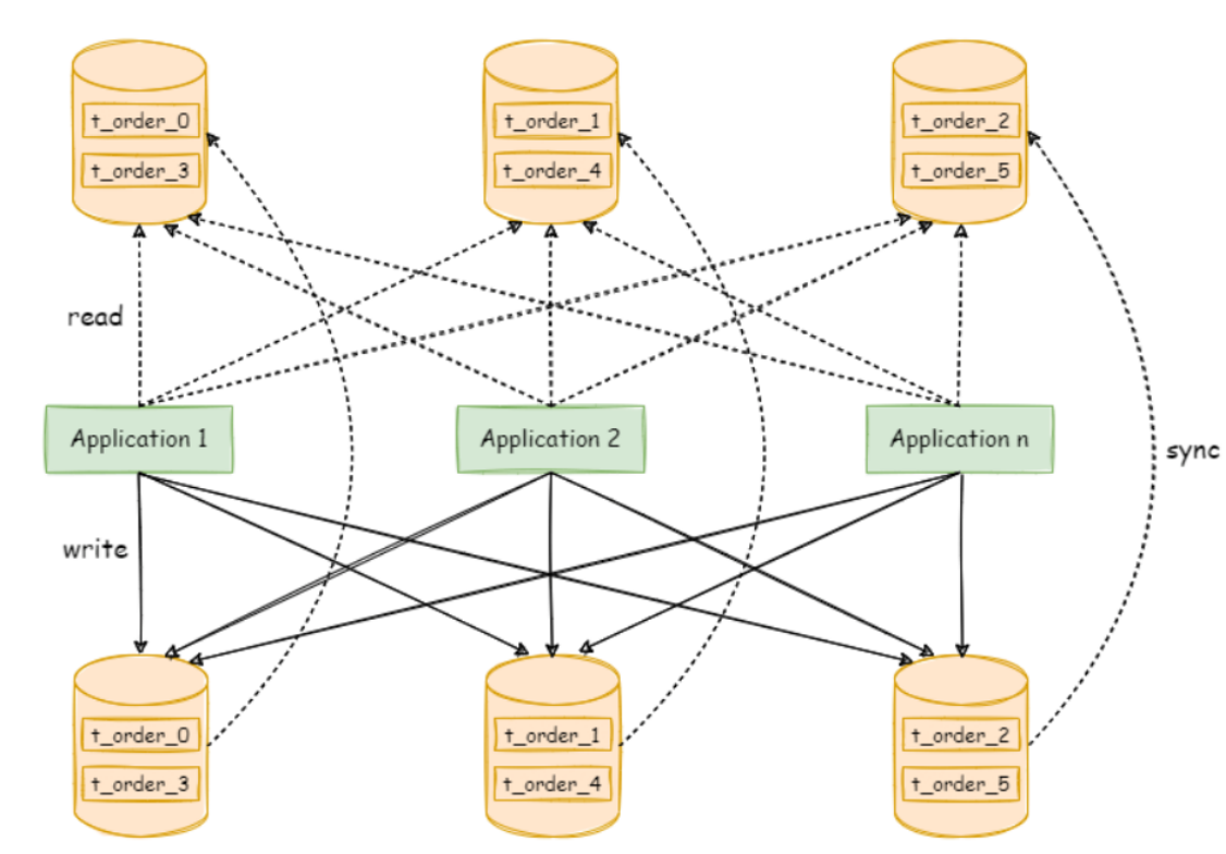 1. 插入更新操作会通过分布式中间件实时在所有数据节点上执行,以保证数据的一致性