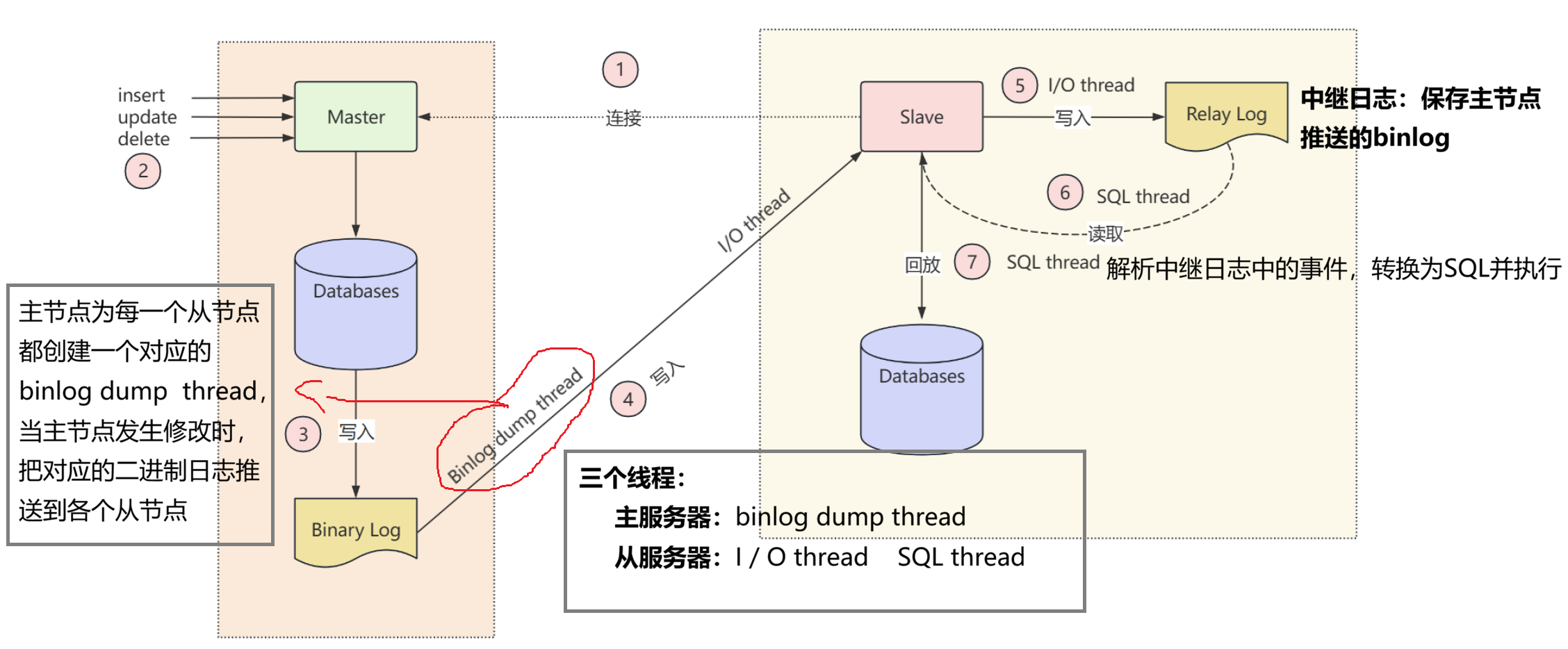 2. 主服务器为每个 从服务器创建对应的binlog dump线程