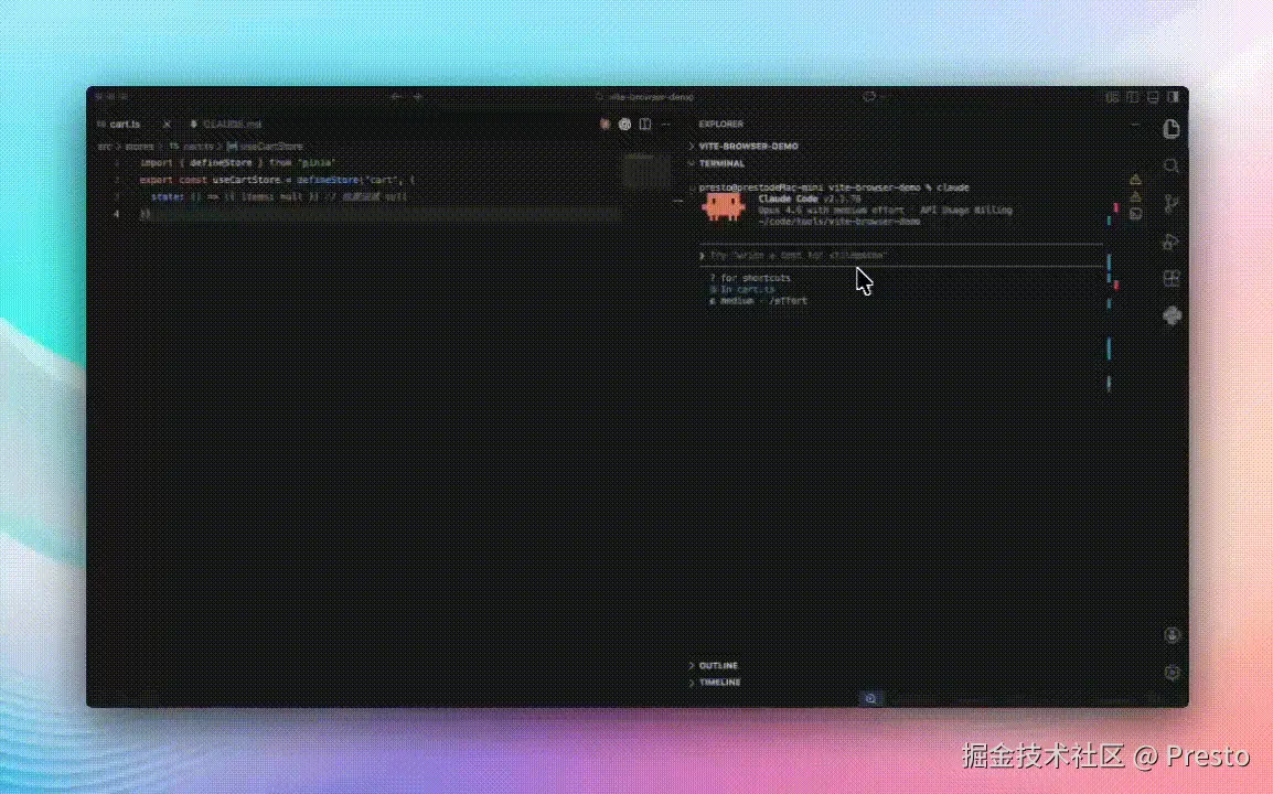 Vue、React(非 Next.js)、Svelte------用 Vite 的项目没有 next-browser 这样的工具。所以我做了 vite-browser,把这套架构移植过来。