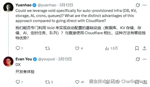 没必要从第一天就手写全部基础设施细节。VoidZero 创始人尤雨溪在一个评论里,回答得很直接:
