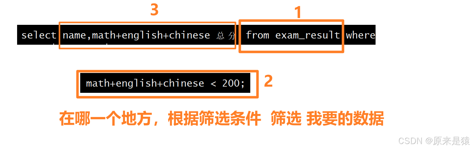 SELECT name, chinese + english + math 总分 FROM exam_result