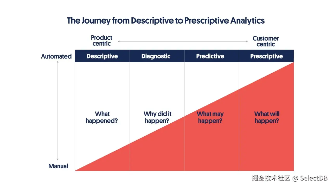 - 面向内部的分析是公司监控运营、绩效和决策的核心系统。其价值演进正经历一场质变:从回答"发生了什么"(描述性分析),跨越到回答"我们应该做什么"(规范性分析)。