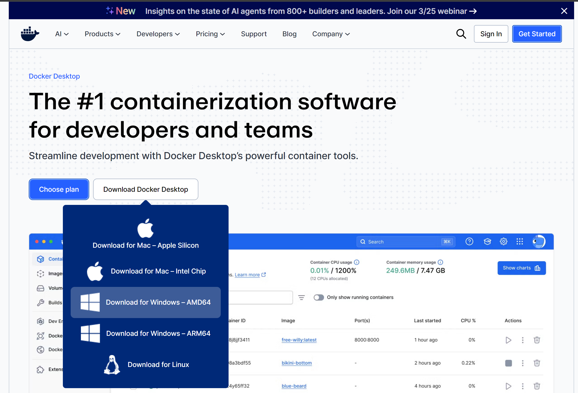 - 先在浏览器搜索docker,然后进入主界面,找到download,下载对应版本的docker: