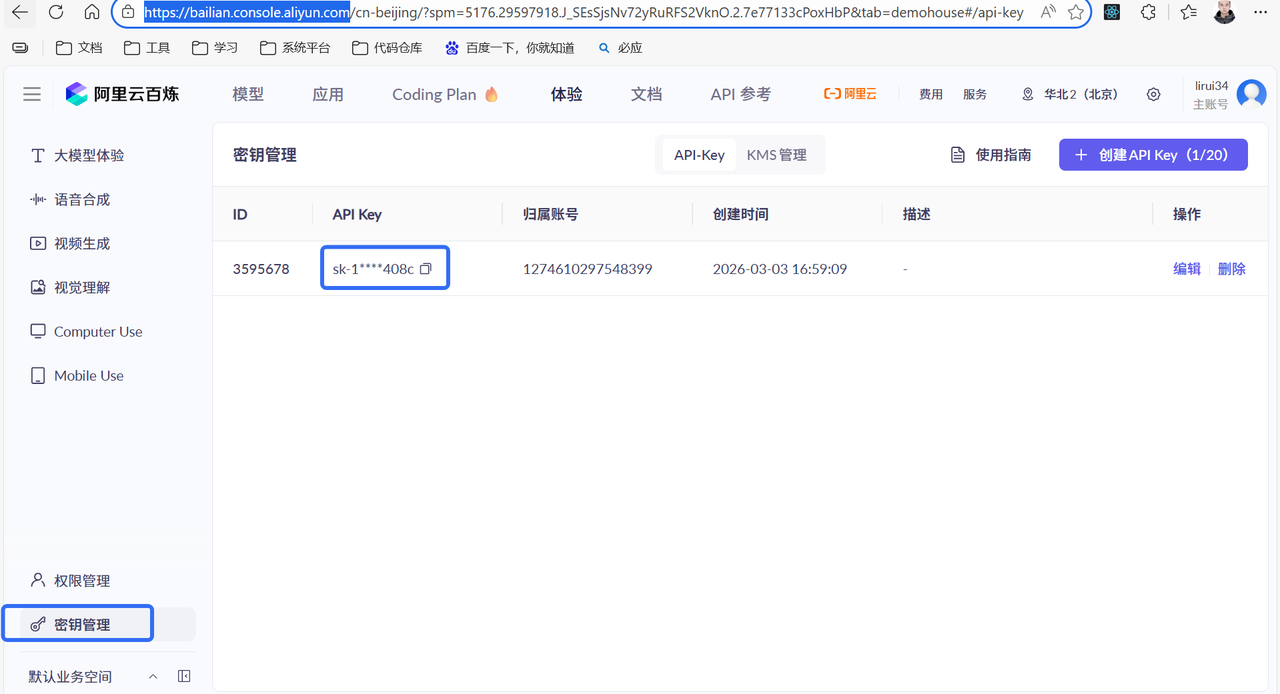 一个可用的大模型API KEY(可用千问https://bailian.console.aliyun.com/或智谱https://bigmodel.cn/console/overview的免费大模型,前往官网注册获取)