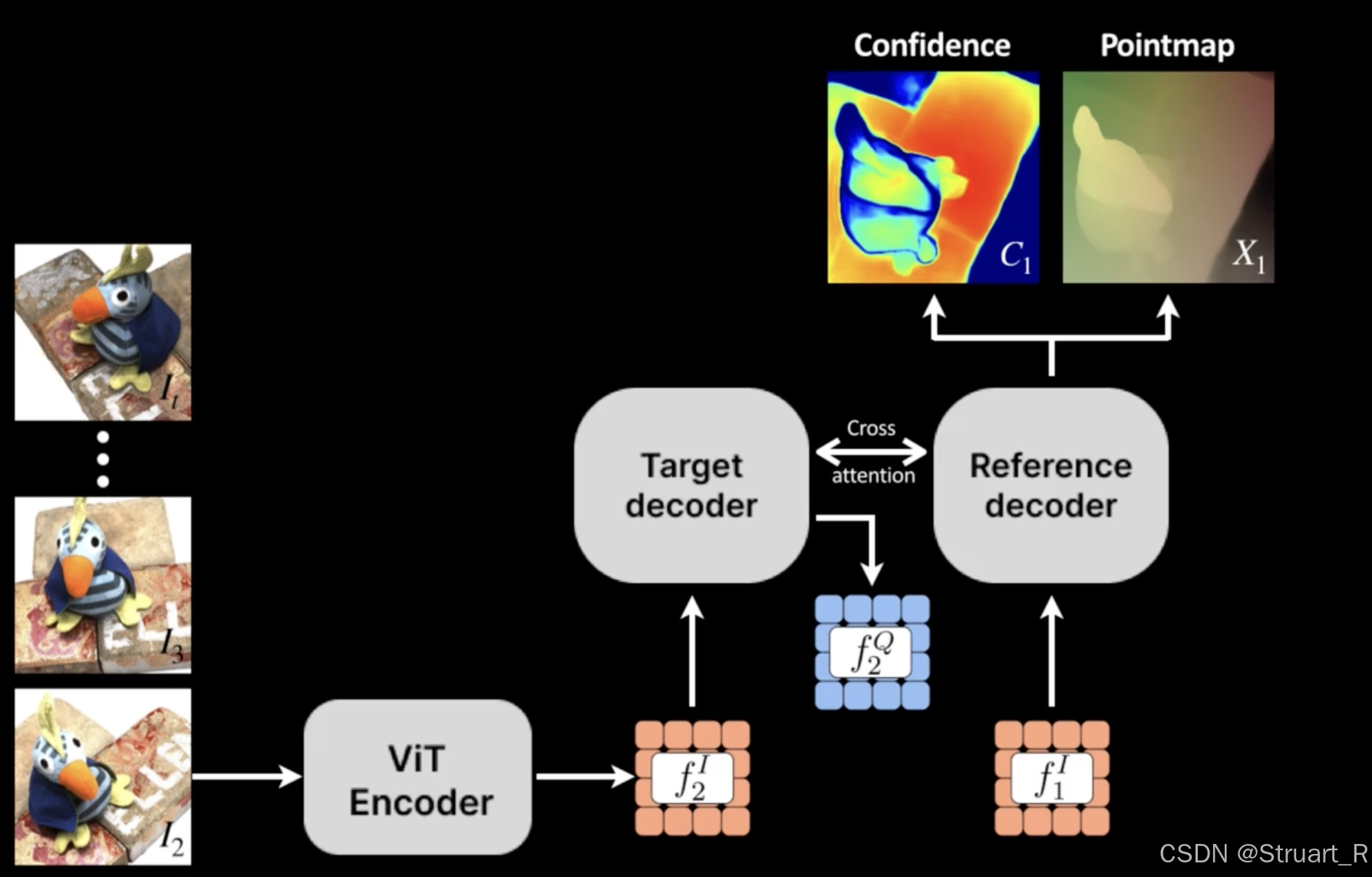 下图是DUSt3R的图,他是两个decoder共享权重,Spann3R也是采用相同的结构