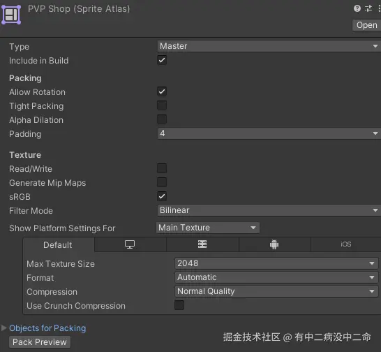 /// 配置图集的打包设置和平台压缩格式