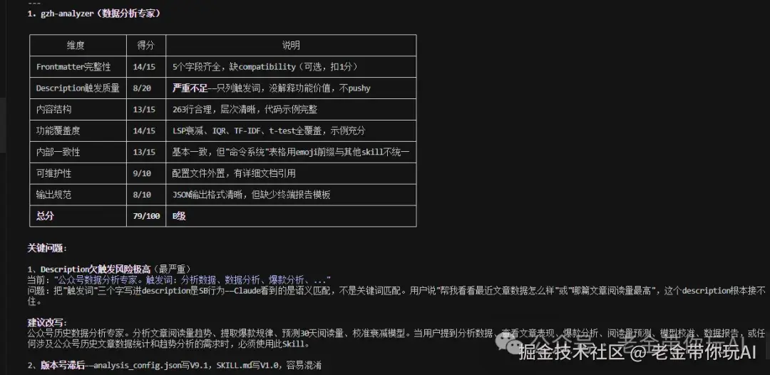 另外,评估跑一次要消耗不少token。 几百个Skill逐个跑一遍,成本不低。 建议先挑最常用的20个跑,不用一口气全上。