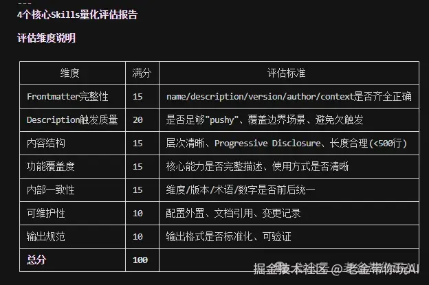 生成完之后好不好用?它不管。 触发词准不准?它不管。 Skill有没有起到实际作用?它也不管。