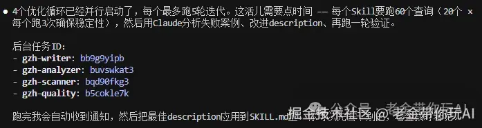 如果你Skill几百上千个 优先跑触发优化。 Skill多了触发冲突是最致命的问题。 自动优化+train/test拆分,比手动调靠谱太多。