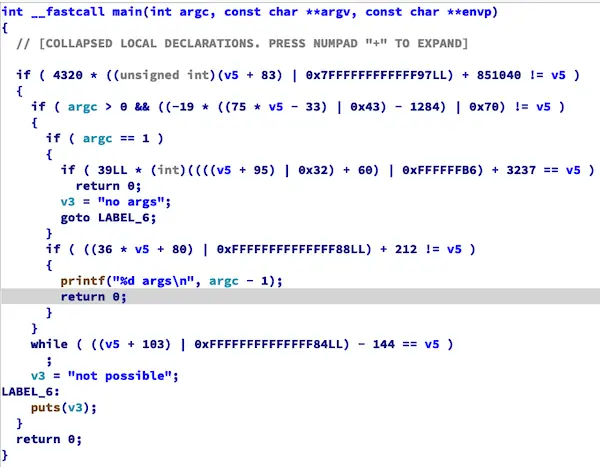 printf("%d args\n", argc - 1);