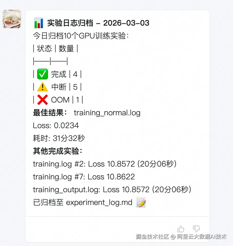 - 用户痛点: 做算法实验最头疼的不是跑实验,而是整理实验记录。每次训练完,得手动记录超参数、结果指标、结论和改进方向。