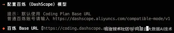 (1)配置百炼Base URL。默认使用的百炼Coding Plan的URL,普通百炼账号请输入:dashscope.aliyuncs.com/compatible-...