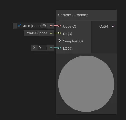 Sampler端口允许指定自定义的采样器状态,覆盖立方体贴图的默认采样设置。此端口是可选的,如果未连接,节点将使用立方体贴图资源自带的采样器状态。
