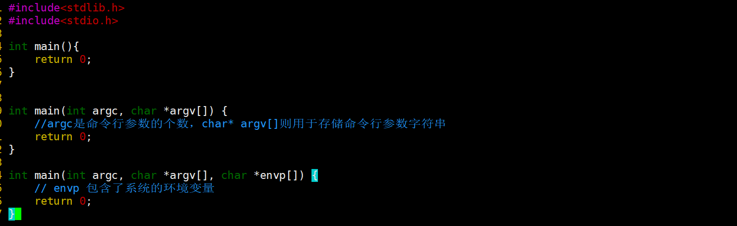 这里补充一下main函数的参数形式:无参数 、带命令行参数,此外还有带环境变量参数