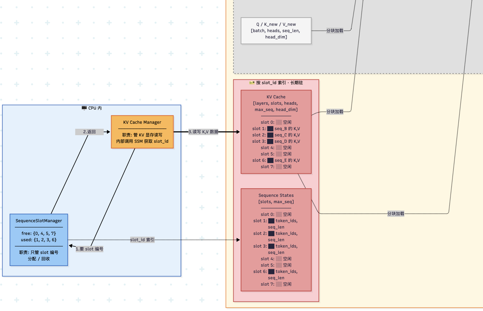 • KV Cache 管理交互:它与 Paged KV Cache 管理器深度配合,在生成新 Token 时动态申请和释放显存块。