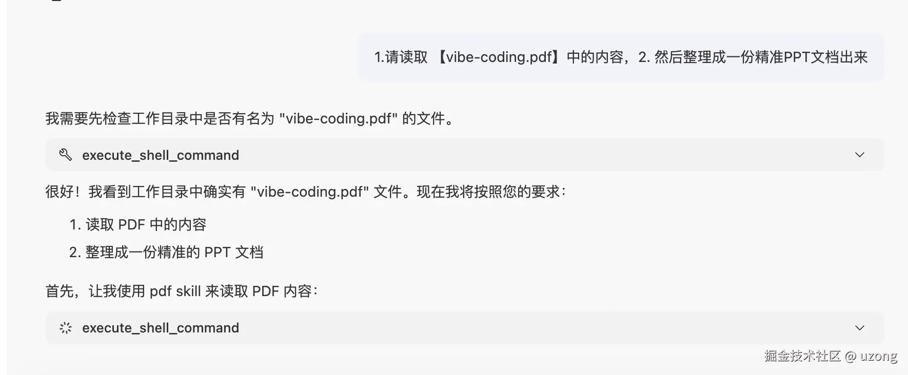 使用 PDF 和 PPT 两个 Skill,目标是将 PDF 转换成 PPT