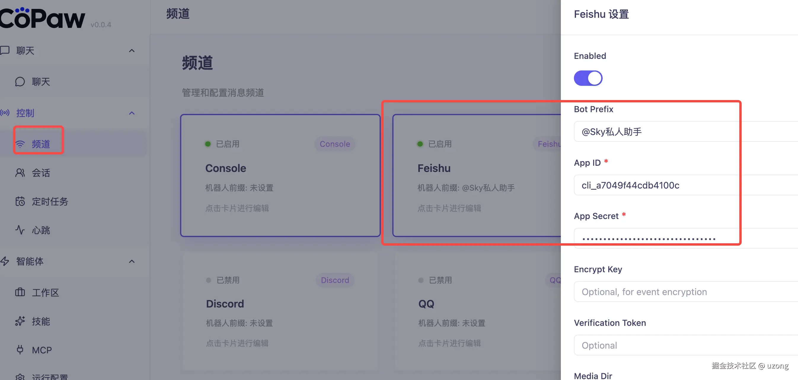如果 MCP 和 Skill 搭配得当,使用体验尚可。但其他功能(如飞书通道)感觉能力偏弱,交互不够流畅;此外,目前的会话窗口仅支持文本,尚不支持图片等多模态交互。整体而言,产品尚处于初级阶段,能跑通流程,但体验效果没有那么惊艳。希望后面的 CoPaw 越来越棒。