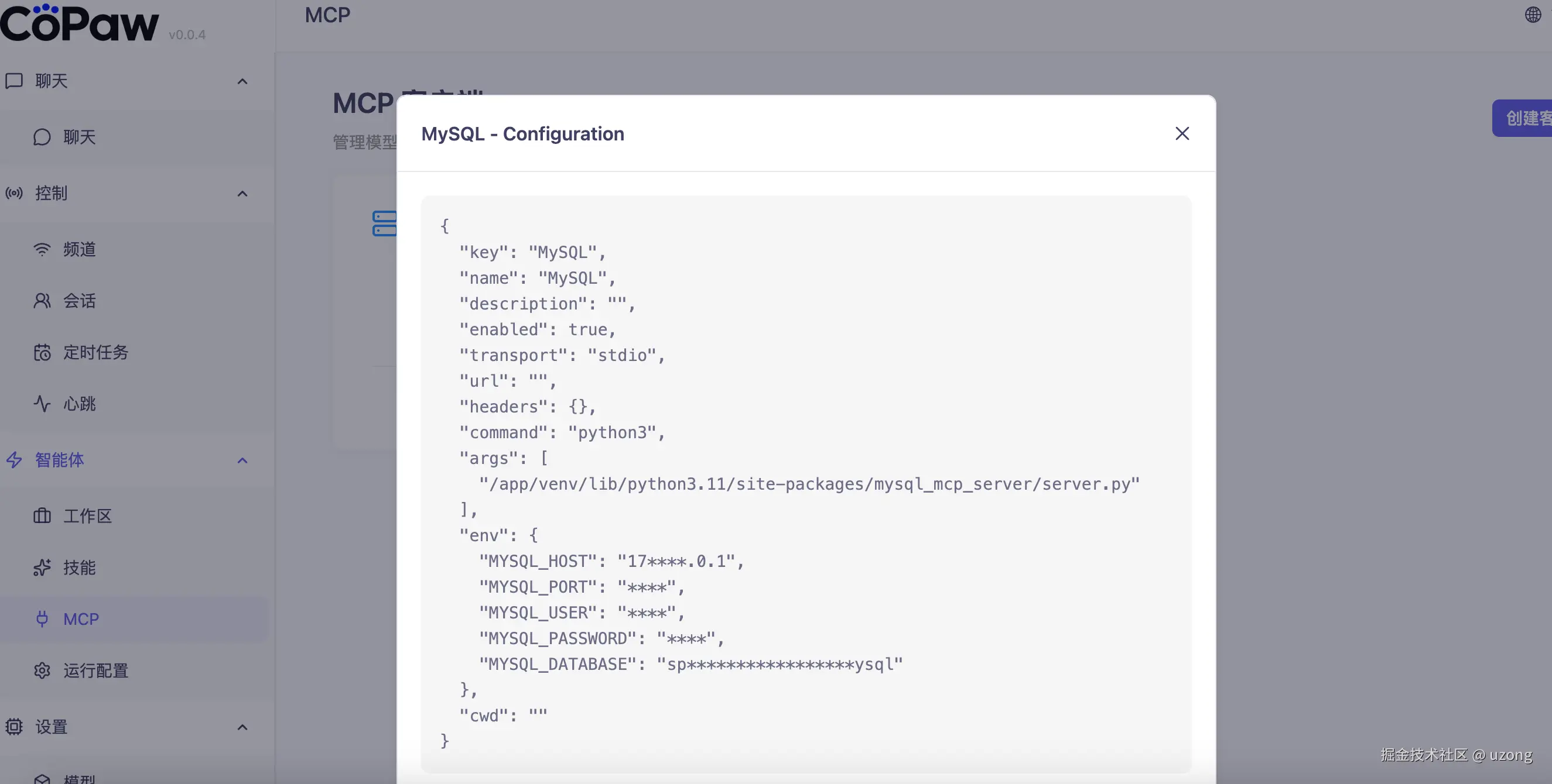 创建一个 mysql 的MCP,通过 CoPaw 进行交互访问。