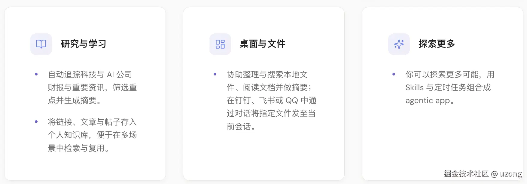 功能不算特别多,可以对智能体继续创新使用。简化一些关键功能