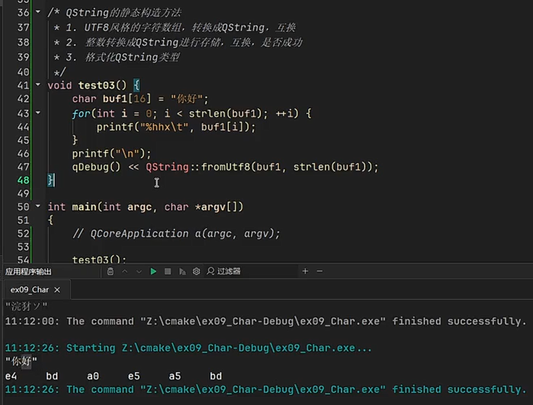 静态from方法转换,因为printf和qDebug同时使用,控制台优先级缘故,先打印"你好"