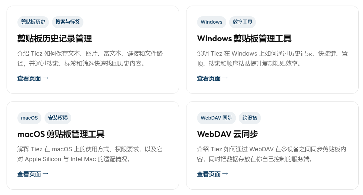 TieZ 是一款基于 Tauri 2 构建的跨平台桌面剪贴板管理工具,支持 Windows 和 macOS。它常驻系统托盘,可通过全局快捷键快速呼出,帮助你更高效地管理文字、图片、富文本、局域网传输和多设备同步。