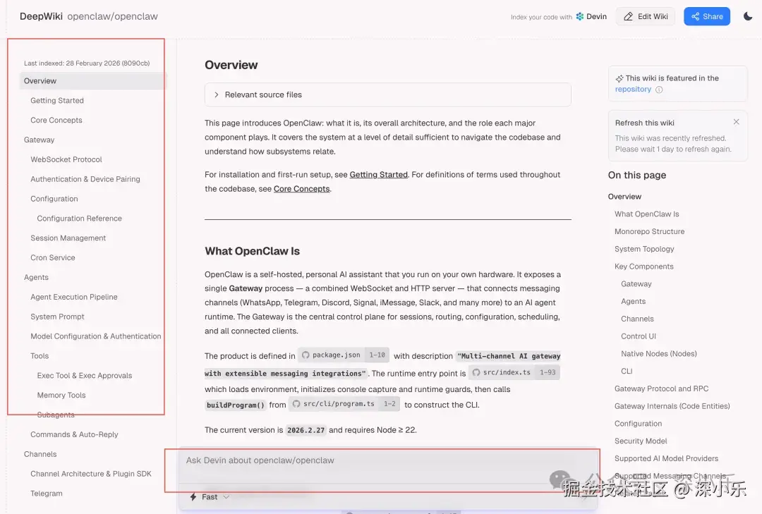 https://github.com/openclaw/openclaw - DeepWiki 地址: