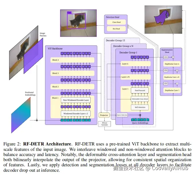 - Transformer 做实时检测的可行性验证:DINOv2 骨干 + NAS 优化的检测头,在 COCO 上超越 YOLO 同级模型