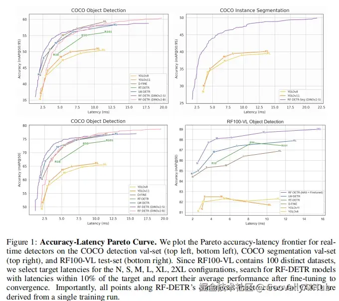 YOLO 系列在实时检测领域统治多年,核心优势是速度。但 RF-DETR 证明了 Transformer 架构在实时场景下也能做到更好: