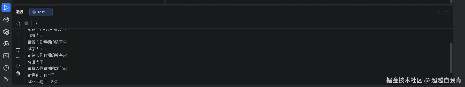 - 猜中提示:每次猜不中时,提示 "数字大了" 或 "数字小了"。
