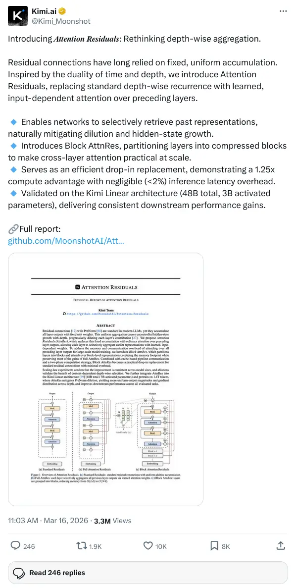 Kimi 团队上周发了一篇论文,悄悄重写了 Transformer 里一个被用了将近十年的基础组件。残差连接,几乎所有大模型都在用的东西------他们说,这东西有问题,他们修了。