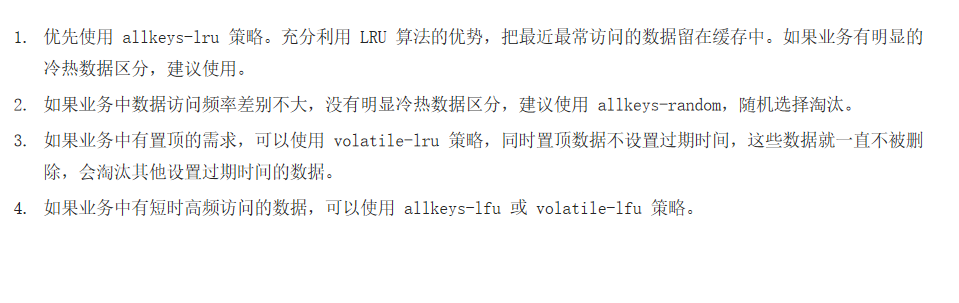 Redis中的内存不够用时,此时在向Redis中添加新的key,那么Redis就会按照某一种规则将内存中的数据删除掉,这种数据的删除规则被称之为内存的淘汰策略。