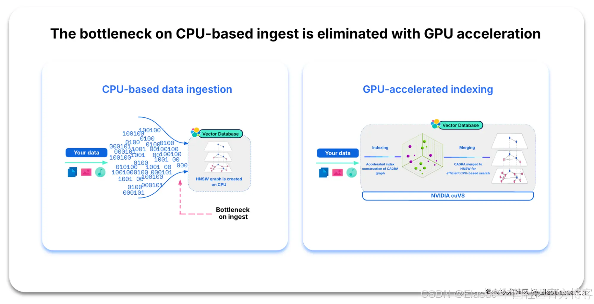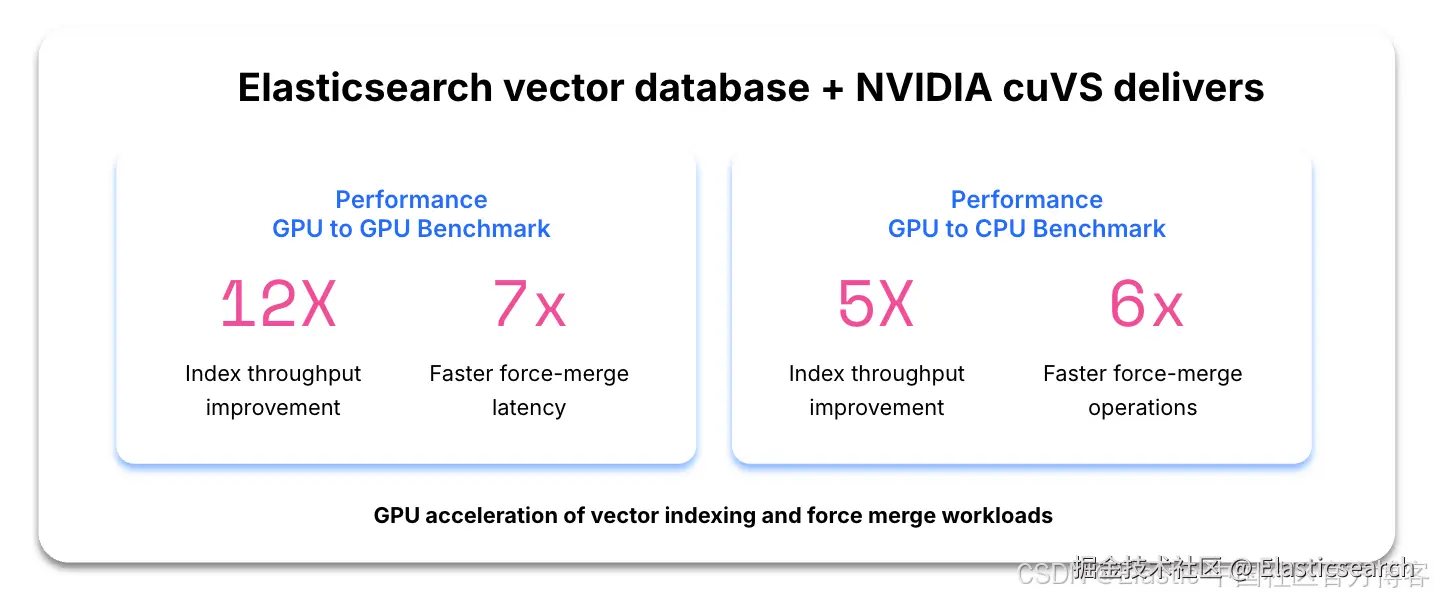 - Elastic 与 NVIDIA 合作推出了由 NVIDIA cuVS 提供支持的 GPU 加速向量索引。