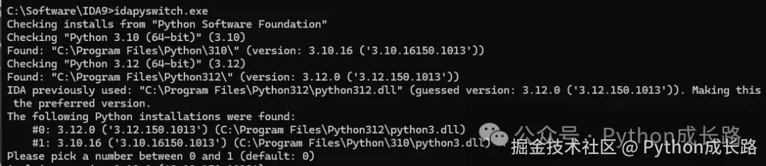 安装Python的时候勾选添加到PATH里,运行idapyswitch.exe就可以搜索到,然后选择相应的序号就配置完成了。