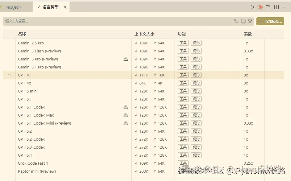 我订阅了GitHub的copilot Pro版本,最近想玩一下IDA mcp效果怎么样,但是又不想花钱买API,所以想想能不能直接在copilot里使用,copilot能使用的模型其实很多,最新的模型基本都能使用