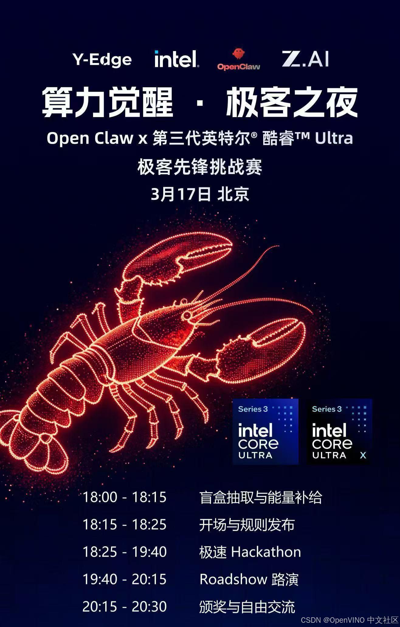 3.17北京极客之夜硬核召唤:用Open Claw解锁第三代英特尔® 酷睿™ Ultra,亲手触摸算力天花板