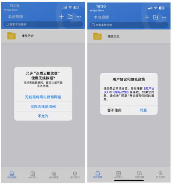 下载安装完毕,打开播放器,同意用户协议以及网络数据的使用。