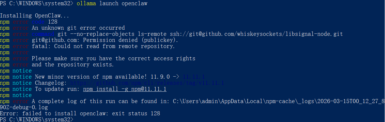 有了ollama之后直接使用命令ollama launch openclaw启动openclaw,出现如下提示: