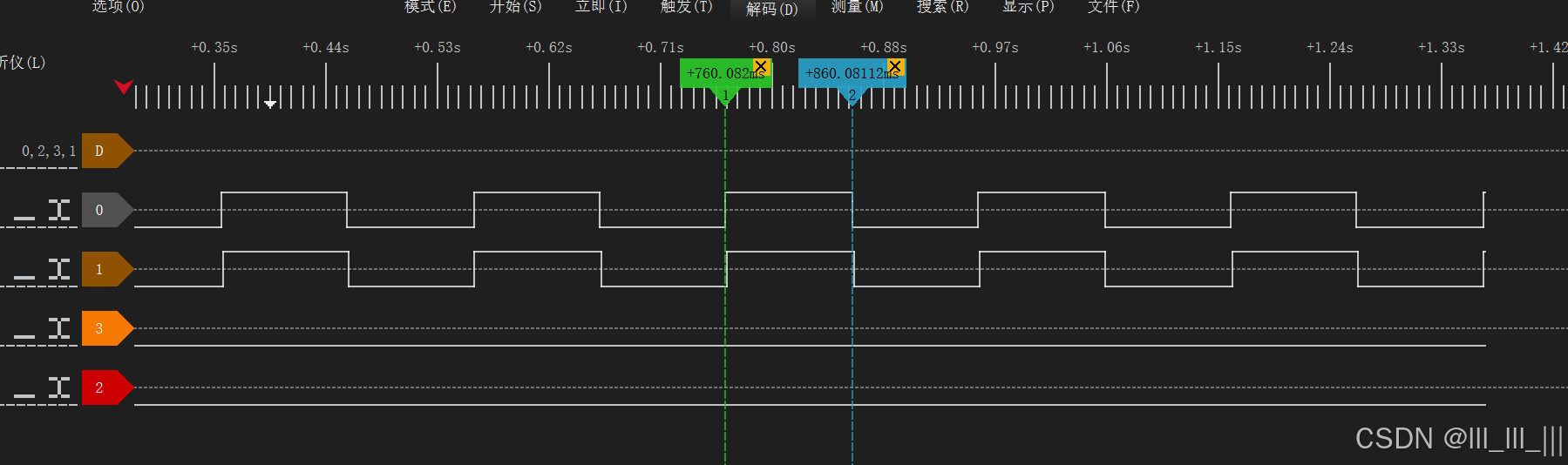 去掉打印,时间改成1ms,发现翻转时间是标准的1ms'