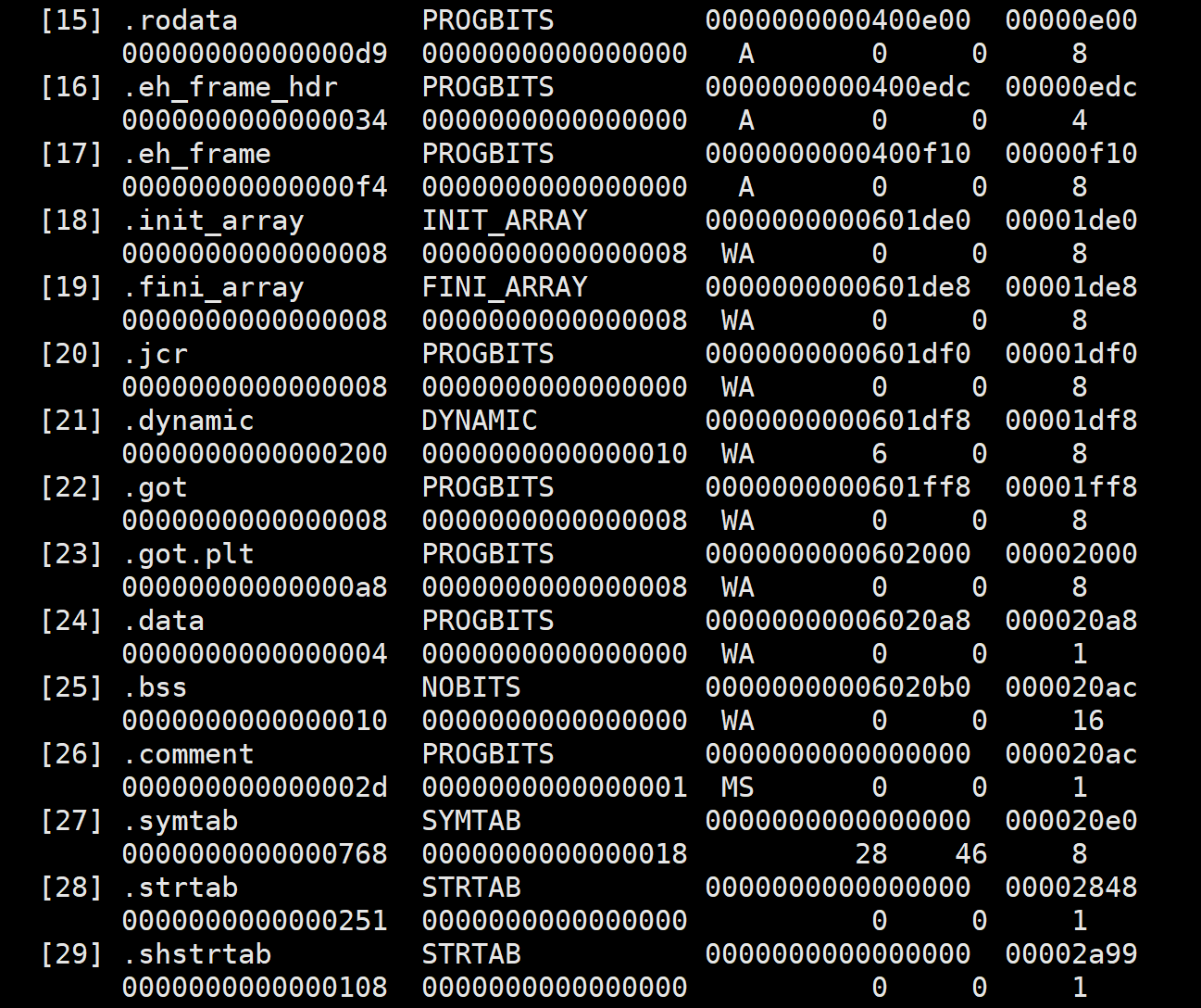 sh_offset+sh_size→ 直接定位该 section 在文件中的位置